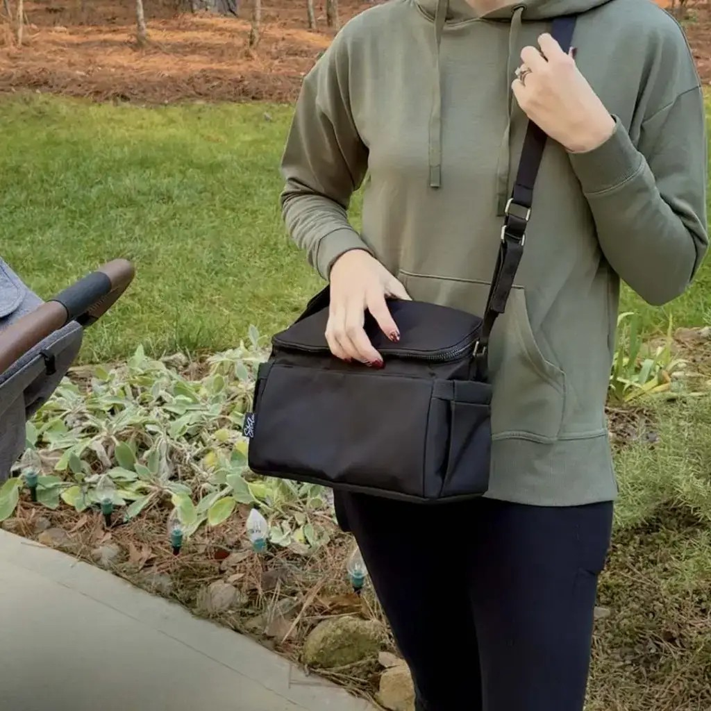 Keep your essentials close at all times with the Strolee Deluxe Organizer. Easily compatible with any brand stroller, the multi pocket design provides quick access to phones, wallets, water bottles, purse and more. You can quickly remove the bag from your stroller & take it with you thanks to the adjustable crossbody straps  Enjoy effortless convenience with the simple but secure design.